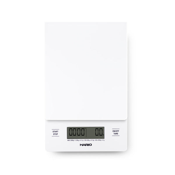 This timer and scale, when combined with the Hario Drip Station, forms the ultimate Hario symbiosis for precision pour-over brewing. It is designed to be accurate, easily readable, and has a very efficient shape. The only part that sticks out from under the drip station is the display and the buttons where you tare, read the weight and control the brew timer.